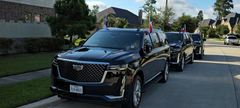 Celebrity and VIP reception service with a large fleet of limousines, providing police escort from Houston to ensure a smooth procession without traffic congestion.